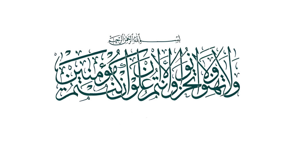 وَلَا تَهِنُوْا وَلَا تَحْزَنُوْا وَاَنْتُمُ الْاَعْلَوْنَ اِنْ كُنْتُمْ مُّؤْمِنِيْنَ. (آل عمران: 139)