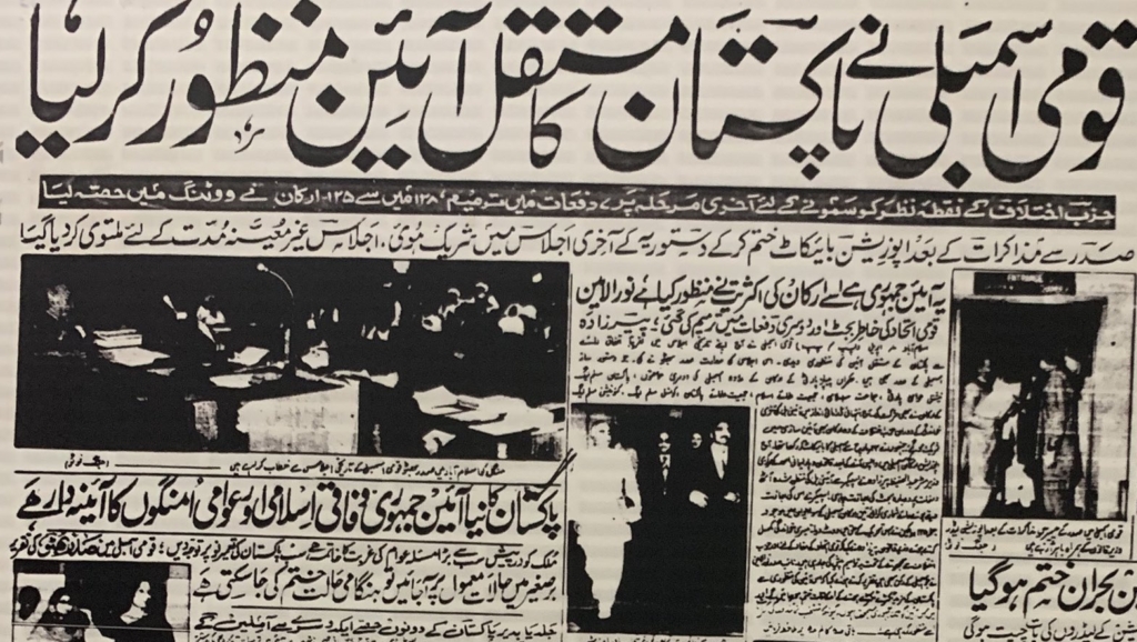 یہی آئین ہے کہ جس میں قراردادِ مقاصد شامل کرکے اس کے اسلامی ہونے کا اعلان کیا گیا تھا اور اس کی بنیاد پر کہا جانے لگا تھاکہ ریاست نے اب کلمہ پڑھ لیا، مگر اس کے اس کلمے نے تب بھی اس کو مسلمان نہیں کیا اسی لیے ۷۳ء میں اس کے اندر ایک اور اعلان بھی شامل کیاگیاکہ کوئی قانون قرآن وسنت کے خلاف نہیں بنایا جائے گا۔ عرصۂ دراز تک جب یہ عہدو عزم بھی کسی مرض کی دوا نہیں بنا اور اس پر سوالات کھڑے کیے گئے تو برملا کہا گیا کہ اس اعلان کی حیثیت محض ایک وعدے کی ہے، نہ کہ یہ کوئی ایسی آئینی شق ہے کہ جو غیر شرعی قانون سازی روکنے کی بھی موجب بنے1۔ یہ بھی فرمایا گیا کہ جس طرح اسلامی شقیں پارلیمنٹ نے آئین میں شامل کی ہیں اوروہ محترم ہیں،یہ دیگر( غیر اسلامی) شقیں بھی اسی پارلیمنٹ کی اکثریت نے پاس کی ہیں،لہٰذا اُن کابھی برابر احترام لازم ہے۔