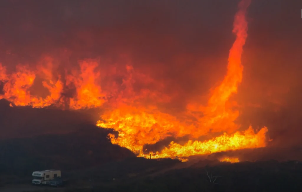 سوا سال سے غزہ میں امریکہ اور اسرائیل کی مشترکہ دہشت گردی اور انتہا پسندی کے مظاہر تاریخ عالم میں ثبت ہو چکے۔ اس سے سنبھلے نہ تھے کہ شام کے 13 ہولناک سالوں میں اپنے ہی عوام پر بمباریوں، ممنوعہ خوفناک کیمیائی حملوں کی ہزار داستان مع شواہد کے دنیا کے سامنے آگئی۔ یہ حقیقت بھی خود مستند ترین مغربی میڈیا نے کھول دی کہ اس میں امریکہ، ایران،لبنان، روس، فرانس کی پشت پناہی و مدد شامل رہی۔ اسرائیل کے لیے تمام مغربی ممالک کا اسلحہ، ڈالر اور امریکی و یٹو حاضر تھا،اورشام میں روس کا ویٹو۔ انتہا پسندانہ جنگ جس میں مسلمان سے جینے کا حق چھین لینا ہی گلوبل انصاف ہے۔ سو آج انتہا پسندی، دہشت گردی کی انتہائی متنازعہ اصطلاحیں سفاک لطیفے سے زیادہ حیثیت نہیں رکھتیں۔ اللہ کی مکافاتِ عمل کی لاٹھی کیلی فورنیا پر جہنم زار بنانے کو برسی ہے۔ یہ اصطلاحیں سیاہ دھوئیں کے بادلوں، سرخ غضب ناک شعلوں اور ہیبت ناک آگ بھرے طوفانوں میں جل کر راکھ ہو گئیں۔ طوفانی ہوائیں بگولے ’Tornado‘کہلاتی ہیں۔ کیلی فورنیا میں یہ صدی کے شدید ترین فائر نیڈو ’Firenado‘آگ بھرے بگولے بن گئے۔ (160 کلومیٹر فی گھنٹہ)۔