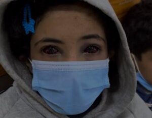 یہ ۱۳ سالہ بچی آمنہ غنم ہے۔ اس کی آنکھیں انگاروں کی طرح سرخ ہیں ۔ اس قدر سرخ کے معلوم ہوتا ہے اگر ان میں سے کوئی آنسو ٹپکا، تو وہ بھی خون کا آنسو ہو گا۔ آمنہ اپنے گھر والوں کے ساتھ ٹین کی چھت والے ایک شیلٹر میں رہ رہی تھی۔ جنوری ۲۰۲۴ءکی کوئی سرد رات جب وہ سب گھر والے سو رہے تھے، اسرائیلی ٹینکوں کی آواز سے ان کی آنکھ کھلی، یہ ٹینک انہیں روندتے ہوئے ان کی چھت کے اوپر چڑھ گئے جس کے نتیجے میں وہ سب ان کے نیچے پھنس گئے اور بری طرح کچلے جانے لگے۔ تمام رات یہ ٹینک انہیں پیستے رہے اور بالآخر صبح کہیں جا کر رخصت ہوئے۔ اس دوران بری طرح کچلے جانے کے سبب آمنہ کی آنکھوں میں خون کی رگیں پھٹ گئیں، اور تمام سفیدی خون کی سرخی میں ڈوب گئی۔