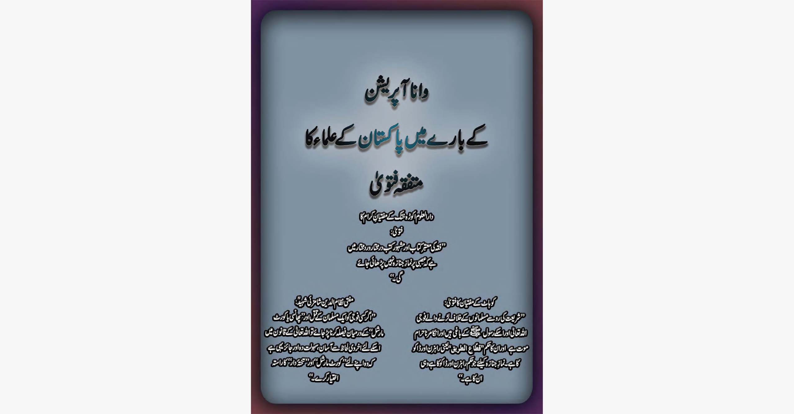 وانا آپریشن کے بارے میں پاکستان کے علماء کا متفقہ فتویٰ